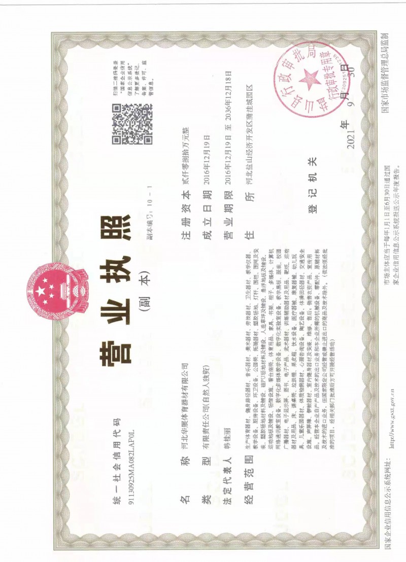 發證機構:   鹽山縣市場監督管理局 發證時間 :   2019-09-30