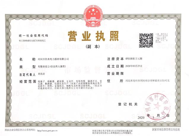 營業執照,河間市凱奇電力器材有限公司