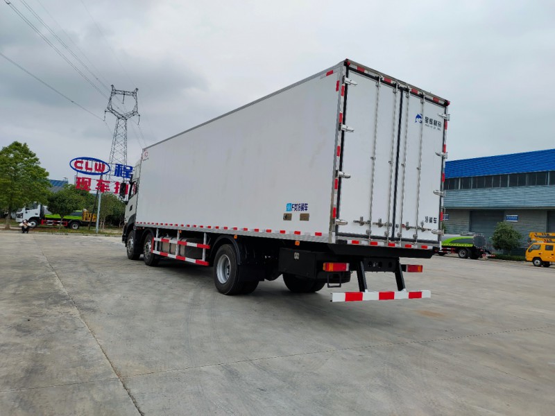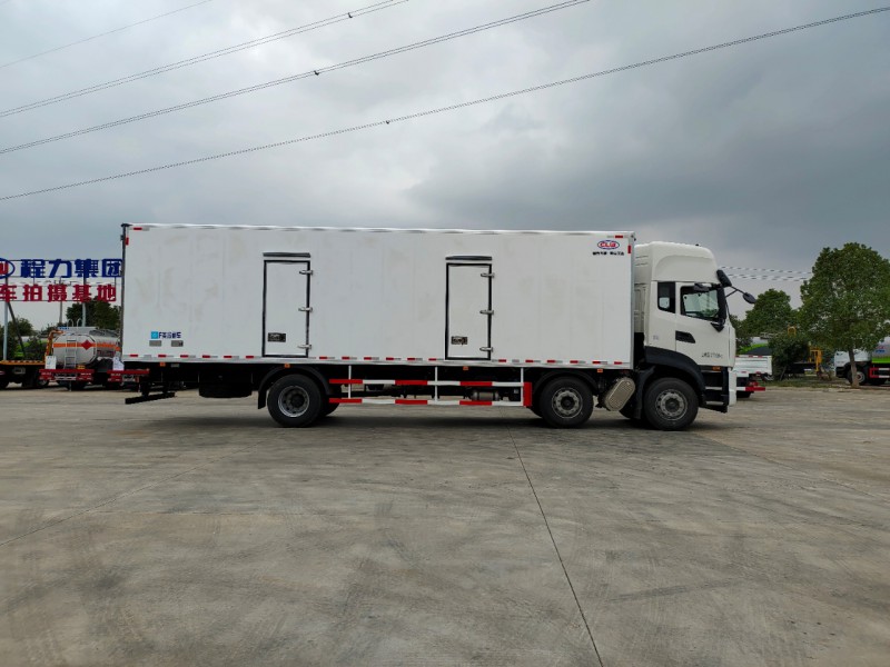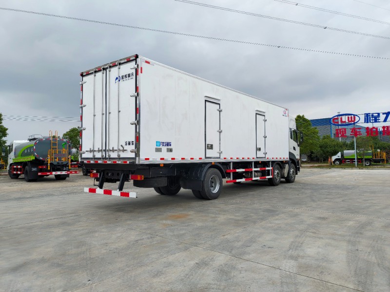 廂體配置:廂體采用先進的zui新木質工藝、斷橋隔熱技術,箱體內外玻璃鋼,深埋螺栓,采用大型熱壓設備無縫合成,一次成型,降溫速度快、散溫慢、保溫效果好,箱板是由鍍鋅管骨架加上環保防水木板用螺絲連接,中間8CM保溫板填充,底板采用10CM厚具有抗震保溫耐用加厚板,廂體四周采用直角鋁型材包邊,后門采用不銹鋼鎖件,開單側門,30公分圍裙,不銹鋼爬梯,工具箱,其余標配。
