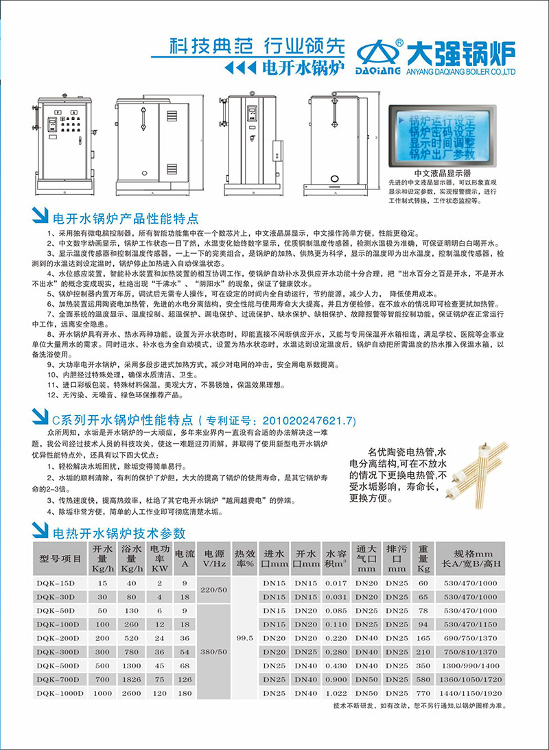 電開水鍋爐產(chǎn)品性能特點(diǎn):