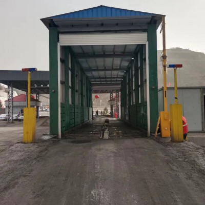 車輛進(jìn)口位置設(shè)置紅外對(duì)射感應(yīng)裝置,當(dāng)車輛進(jìn)入洗車臺(tái)時(shí),紅外對(duì)射開關(guān)感應(yīng)到車輛進(jìn)入,發(fā)送信號(hào)自動(dòng)啟動(dòng)洗車機(jī)按設(shè)定程序開啟水泵工作通過噴嘴噴水,車輛沖洗方式為行進(jìn)式?jīng)_洗,車輛勻速行進(jìn)過程中高壓水通過噴嘴噴射沖洗車輪、車身及底盤上顆粒等附著物,當(dāng)設(shè)定的沖洗時(shí)間結(jié)束后,所有水泵全部關(guān)閉,可設(shè)置延時(shí)開關(guān),延時(shí)結(jié)束;沖洗后車輛繼續(xù)低速勻速前進(jìn),同時(shí)啟動(dòng)風(fēng)機(jī)工作,經(jīng)抖水瀝干和風(fēng)機(jī)風(fēng)干能夠有效減少車身滴水,當(dāng)設(shè)定時(shí)間到達(dá)(一般為10-30秒),快速卷閘門開啟,車輛駛離。但當(dāng)車輛長(zhǎng)度超過抖水風(fēng)干段長(zhǎng)度時(shí),設(shè)定風(fēng)干時(shí)間到達(dá),快速卷閘門開啟,車輛仍然保持低速勻速前進(jìn)駛離,車輛駛出洗車臺(tái)后,卷閘關(guān)閉,整個(gè)清洗、抖水、風(fēng)干作業(yè),出車口卷閘門升起車輛駛出卷閘門關(guān)閉完成,整機(jī)進(jìn)入待機(jī)狀態(tài),等待下一輛車輛進(jìn)入沖洗。