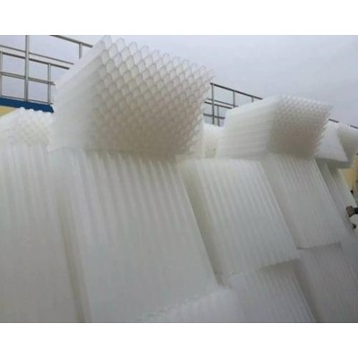 六角形蜂窩填料材質(zhì)有聚丙烯(PP)聚氯乙烯(PVC)乙丙共聚和玻璃鋼(FRP)四種。組裝形式有斜管和直管兩種形式。