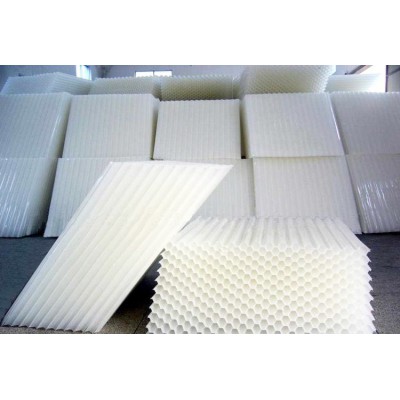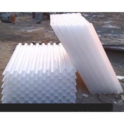 六角形蜂窩填料材質有聚丙烯(PP)聚氯乙烯(PVC)乙丙共聚和玻璃鋼(FRP)四種。組裝形式有斜管和直管兩種形式。