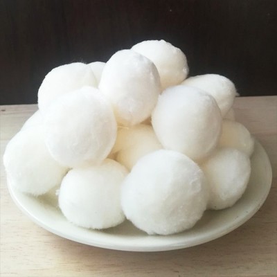 纖維球濾料是由滌綸、丙綸或者腈綸絲扎而成的球形濾料,具有彈性效果好,選用高醛化維呢綸,定型滌綸絲為原料,不上浮水面,空隙大,工作周期長,水頭損失小等優點。用自身表面所沾附的大量生物團與充氧,污水反復接觸,使廢水中的懸浮物及有機物降解而達到處理目的,廣泛使用與各種水處理行業,密度為1.38g/cm,產地為鞏義。