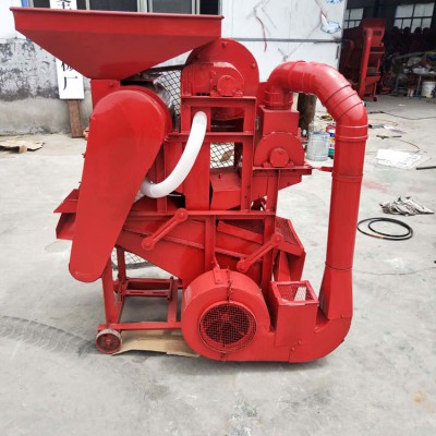 花生脫殼機有機架、風扇、轉子、單相電機、篩網(有大小兩種)、入料斗、震動篩、三角帶輪及其傳動三角帶等組成。機具正常運轉后,將花生定量、均勻、連續地投入進料斗,花生在轉子的反復打擊、摩擦、碰撞作用下,花生殼破碎。花生粒及破碎的花生殼在轉子的旋轉風壓及打擊下,通過一定孔徑的篩網(花生次脫粒用大孔篩網,清選后的小皮果更換成小孔篩網進行第二次脫殼),這時,花生殼、粒受到旋轉風扇的吹力作用,重量輕的花生殼被吹出機體外,花生粒通過震動篩的篩選達到清選的目的。