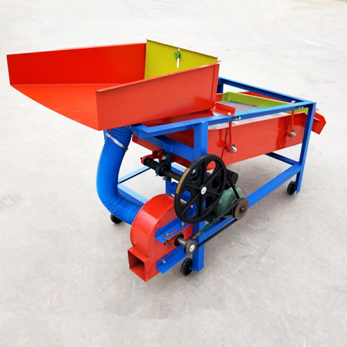 該精選篩為二層篩網,先經過進料口處風機抽風,直接抽走重量輕的雜葉或麥秸稈,上層篩的初次篩分再把大雜清理過,好的糧食(種子)直接落到下層篩網上,下層篩網會把糧食(種子)中的小雜.小石子.有缺陷的糧食(種子)直接漏掉,完好的糧食(種子)會從出料口篩分出來。該小型清糧機解決了揚場機的功能單一,不能有效去除石子.土塊的缺陷,更能為清理.凈選糧食(種子)帶來滿意的效果。該機有占地小,移動方便,便以維修,除塵除雜效率明顯,能耗低,使用簡便等優點。