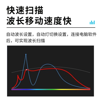 6. 支持快速掃描,波長移動速度快,zui快可達到3000nm/min;自動波長設置,自動燈切換設置,連接電腦軟件后,可實現波長掃描,動力學測定、定量測定、核酸測定、波長疊加、積分導數等高級功能。