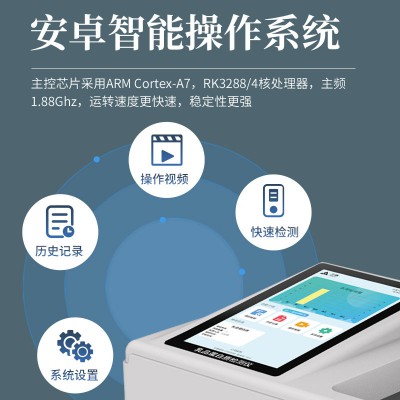 3)儀器采用全新安卓智能系統,主控芯片采用 ARM Cortex-A7,RK3288/4核處理器,10.1寸高清液晶觸摸豎屏,更加高效的UI交互界面,運轉快捷;儀器配備無線通訊接口:配備無線通信模塊、可選配4G(APN)通訊模塊和藍牙傳輸,同時具有雙USB接口以及RJ45網線接口,可以多方式實現數據保存及數據傳輸