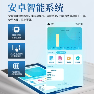 3、顯示屏幕:儀器采用10.1英寸豎向液晶觸摸屏顯,搭配運(yùn)行安卓智能操作系統(tǒng),主控芯片采用ARM Cortex-A7,RK3288/4核處理器,主頻1.88Ghz,操作方便,性能更強(qiáng)。