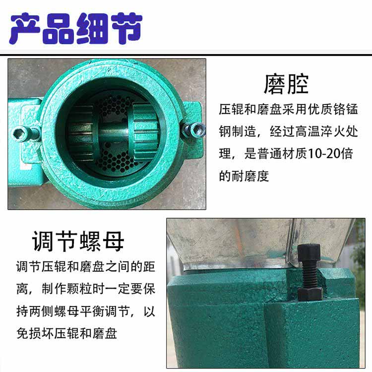 1、飼料顆粒光潔、均勻、硬度適中,顆粒粗細可通過更換不同的模板達到所需目的,孔徑分為Φ1.5、Φ2、Φ2.5ф3、ф4、ф5、ф6、ф 8等。用戶訂貨時可根據養殖動物不同生長期的需要選擇。飼料在加工過程中溫升低,能較好保持原料內的各種營養成份。