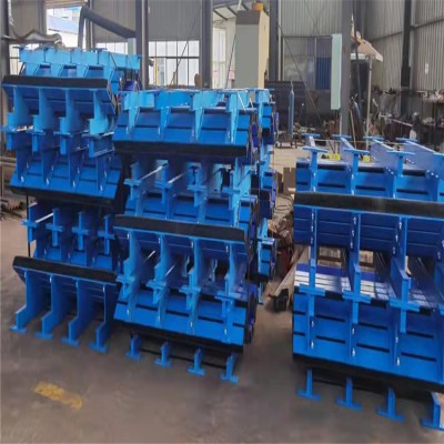 2.可根據不同皮帶寬訂做不同的緩沖床,包括B650-B2200等緩沖床,條體長度長度為1220mm、1400mm、1600mm,1800mm,并可訂做角度在30°-45°之間各種不同角度式的固定式緩沖床或者可調節角度的可調式緩沖床。重型復合式緩沖床