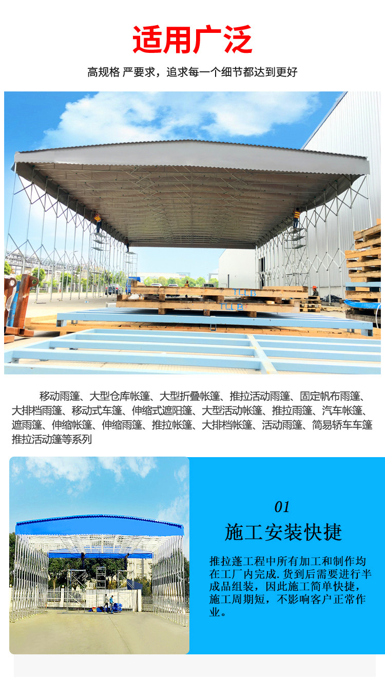 推拉雨棚;電動篷;膜結構車棚;環保噴漆房;移動保溫棚