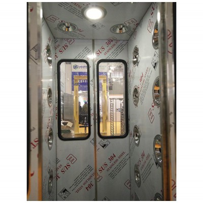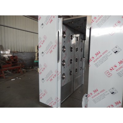 全自動控制,電子互鎖,吹淋時雙門鎖閉,紅外線感應自動吹淋。不銹鋼半玻璃門自動閉門器,透明視窗,內低板為不銹鋼制作;軟件試控制器,LED顯示及設置吹淋時間,范圍0~99秒可調,內部采用圓的漸開線風道,高風速,低噪音。