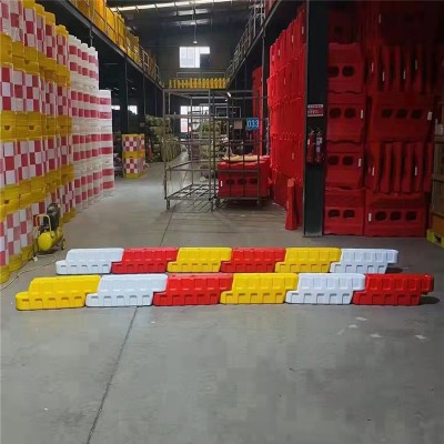 水馬 1、材料采用進口環保線性聚乙烯、進口顏料和添加劑,,可循環再利用; 2、美觀、不褪色,紅/白或紅/黃相間連接使用,警示性高,降低事故發生率。(亦可制作水泥色) 3、顏色鮮明,指示路線清楚明確。可美化公路或城市; 4、中空灌水,具有緩沖性能,能有效吸收強大的沖擊力,大大降低對車輛及人員傷害的嚴重程度; 5、串連使用,整體承受力強大,安裝穩固; 6、兩個灌水孔、一個排水孔,兩人即可完成安裝和拆遷,方便快捷,無需使用吊機,節省搬運成本; 7、用于人員群集場合的分流和防護,可減少警力; 8、保護路面,無需路面施工即; 9、可成直線或弧線擺放,靈活方便; 10、適合道路、分叉口、收費站、建筑工程及大小型人員群集的場合使用,能有效起到道路分隔, 人員和車輛分流等作用。 規格:長度/L:1060mm,高度/H:600mm,上寬/W:120mm,下寬/W:280mm; 重量:凈重6kg,裝水重量:66kg;拉伸強度:16.445Mpa;沖擊強度:20KJ/cm²;;斷裂伸長率:265%;
