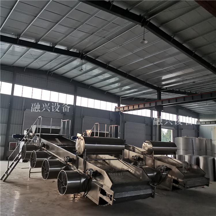 自動攤涼機是我廠根據國內白酒廠生產過程中涼茬操作繁瑣、工人勞動強度大、蓖子孔漏料不易回收等弊端專門生產的一種新型設備。蒸餾結束后將出鍋后的酒槽落入喂料斗并開動機器,中間實現自動加曲、加漿、降溫、卸料,極大地減少了工人勞動強度,整個過程只需15-30分鐘(根據甄鍋容積大小).