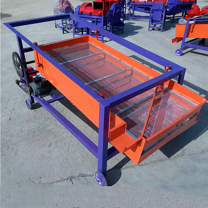 該精選篩為二層篩網(wǎng),先經(jīng)過進料口處風機抽風,直接抽走重量輕的雜葉或麥秸稈,上層篩的初次篩分再把大雜清理過,好的糧食(種子)直接落到下層篩網(wǎng)上,下層篩網(wǎng)會把糧食(種子)中的小雜.小石子.有缺陷的糧食(種子)直接漏掉,完好的糧食(種子)會從出料口篩分出來。該小型清糧機解決了揚場機的功能單一,不能有效去除石子.土塊的缺陷,更能為清理.凈選糧食(種子)帶來滿意的效果。該機有占地小,移動方便,便以維修,除塵除雜效率明顯,能耗低,使用簡便等優(yōu)點。