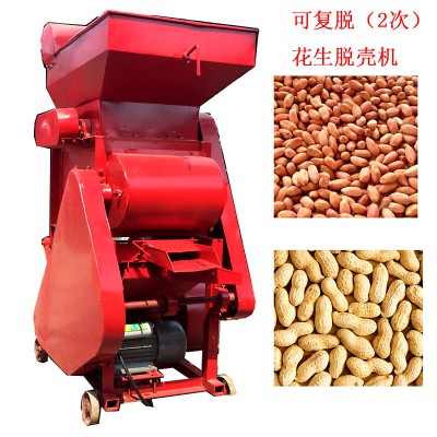 花生脫殼機有機架、風扇、轉子、單相電機、篩網(有大小兩種)、入料斗、震動篩、三角帶輪及其傳動三角帶等組成。機具正常運轉后,將花生定量、均勻、連續地投入進料斗,花生在轉子的反復打擊、摩擦、碰撞作用下,花生殼破碎。花生粒及破碎的花生殼在轉子的旋轉風壓及打擊下,通過一定孔徑的篩網(花生次脫粒用大孔篩網,清選后的小皮果更換成小孔篩網進行第二次脫殼),這時,花生殼、粒受到旋轉風扇的吹力作用,重量輕的花生殼被吹出機體外,花生粒通過震動篩的篩選達到清選的目的。