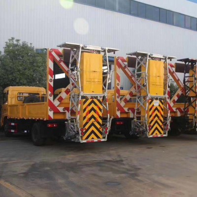 上裝配置:護箱:采用Q235國標邊3mm底板花紋板4mm厚,箱體后部防撞緩沖模塊包采用國產乾行達公司技術產品100K防撞緩沖模塊,防撞緩沖吸能模塊主要由車載防撞緩沖墊和導向標志架組成,充當施工作業車輛后方的緩沖衛士。如若發生追尾事故,能夠在肇事車輛和前方施工作業區域之間構建一個緩沖區域,通過機具結構變形吸收撞擊的能量,最大限度地降低被保護人員及設備遭到碰撞的幾率。高性能液壓系統,可實現快速舉升和落下操作,方便設備運輸轉場,一鍵啟動功能,舉升和落下防撞裝置,當防撞裝置未完全落下到工作位置或舉升到垂直運輸位置時,會有自動警告音提示。