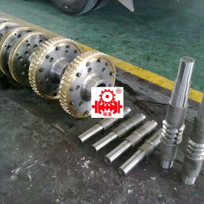 蝸桿采用合金鋼40Cr、42CrMo、38CrMoAL調(diào)質(zhì)及離子氮化處理,齒面經(jīng)硬化處理后 磨制而成,齒面硬度高HRC大于等于58,粗造度Ra大于等于0.8齒形精度高,表面光滑。