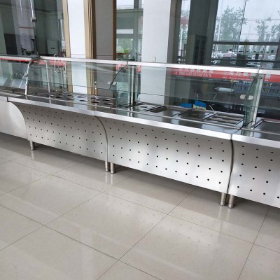 五格快餐不銹鋼保溫售飯臺 商用玻璃罩拉門飯車