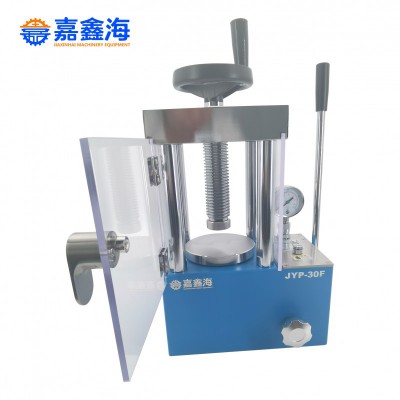 40噸手動指針防護壓片機采用一體式結構,不掉壓,不漏油,消除了多年來壓片機漏油、掉壓的困擾。客戶可根據需求從12噸至40噸自行選型,12噸-24噸壓片機可配套FTIR紅外光譜儀;紅外分光光度計固體粉末制樣。