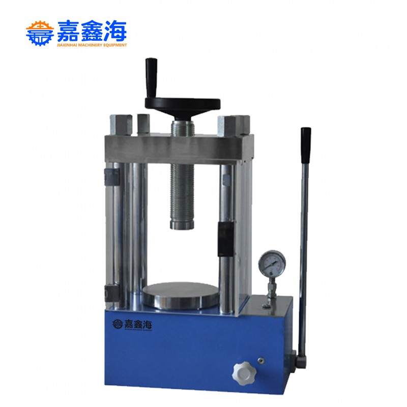 60噸帶防護罩的防護型壓片機,加壓裝置,放置在主機下角,角度合理,加壓省力不前傾。雙刻度指針壓力表,【壓力Tons】和【油缸壓強Mpa】雙顯示,施加壓力不用換算,避免模具出現超壓現象,防護型壓片機針對一些脆性物質的模具或是需要大壓力的模具。