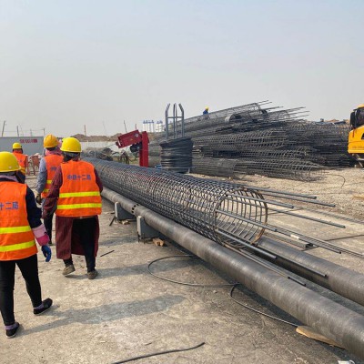 徑兩米以上鋼筋籠,鋼筋籠繞筋機加工出的鋼筋籠精度高,誤差小,兩個相鄰之間繞筋誤差在3mm以內,用米尺直