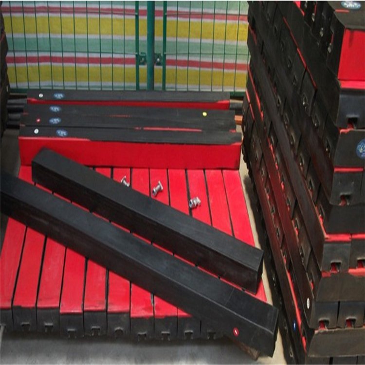 緩沖條各部分粘接采用的是最先進(jìn)熱硫化設(shè)計(jì)工藝,將500萬以上超高耐磨材料與硬度小于55的天燃橡膠及鍍鋅鋼構(gòu)一體硫化成型,穩(wěn)定性好、耐磨性好,使用壽命長,結(jié)構(gòu)簡單,易于安裝和維護(hù),在高強(qiáng)度沖擊作用下,不會發(fā)生緩沖條竄條、條體變形或者粘接不牢的情況。優(yōu)良的高彈性特種橡膠層充分有效吸收了物料下落時的沖擊力,大大降低了物料下落時對輸送帶的沖擊,真正的改善了落料點(diǎn)的受力狀況。并采用特殊的UHMW高分子聚乙烯表面,使輸送帶與緩沖條之間的摩擦系數(shù)降到很低,且耐磨性好。緩沖條的使用保證了輸送帶的面與面的接觸,受力均勻,有效防止了由于托輥斷裂、脫落造成的皮帶縱向撕裂,同時大大降低了皮帶被銳器或尖銳物料穿透后縱向撕裂的概率。
