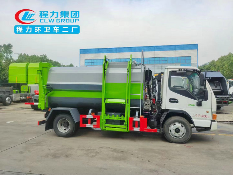 國六福田時代小卡之星2柴油5方掛桶垃圾車底盤采用福田時代小卡之星2車身、1580mm寬駕駛室,全柴95馬力(Q23-95C60)、單排前翻、5檔、6.00R16鋼絲胎、動轉、ABS、可調方向盤、電控熄火、巡航、可調大燈、剎車自調臂,