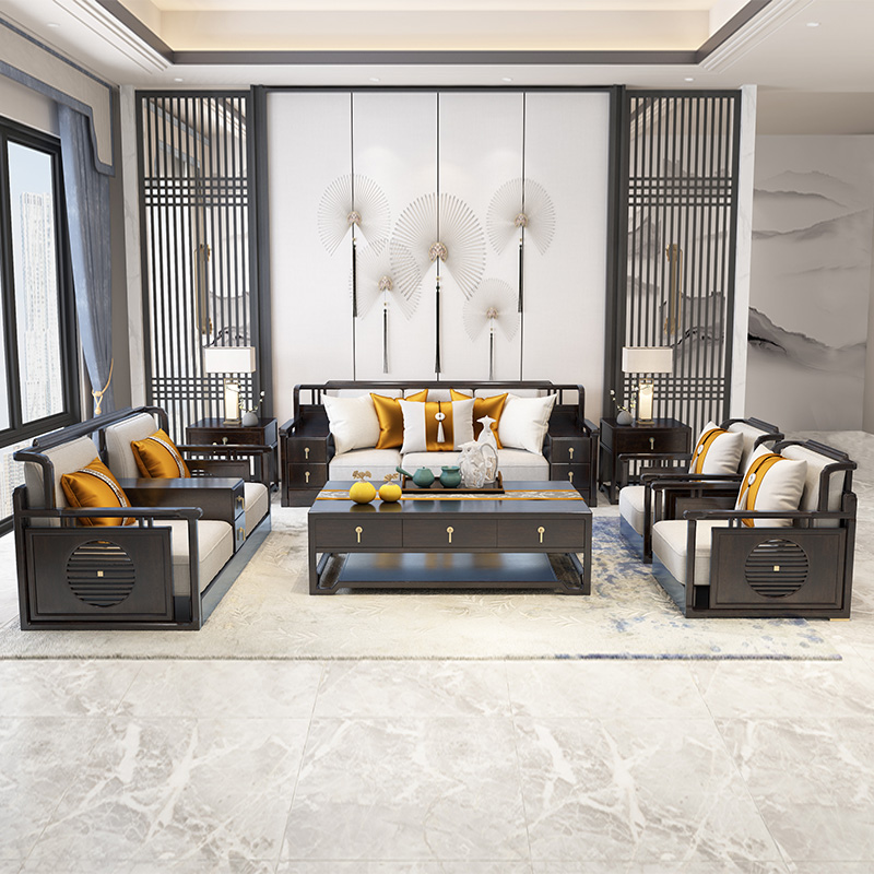 2. 實木沙發 新中式實木沙發組合 現代輕奢簡約布藝沙發