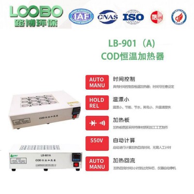 LB-901A COD恒溫加熱器適用于環保、醫療、衛生、食品、自來水、造紙、污水處理、印染、石化、冶金、院校等行業的水質監測,采用空氣冷凝代替水冷凝測定化學耗氧量的加熱回流裝置。