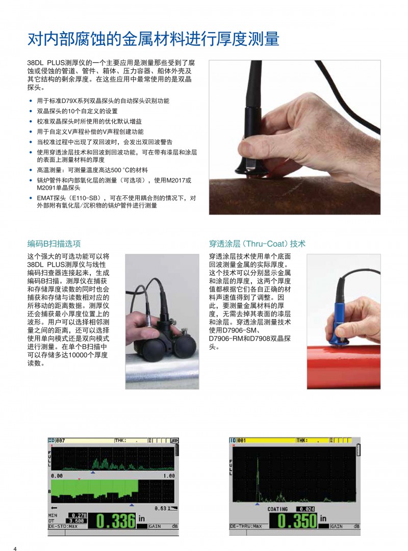 超聲測(cè)厚儀 38DL Plus 兼容雙晶和單晶探頭