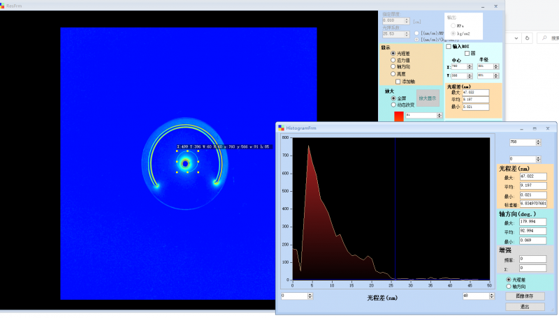 5.隨著鼠標移動,樣品上各處的應力光程差實時顯示;
