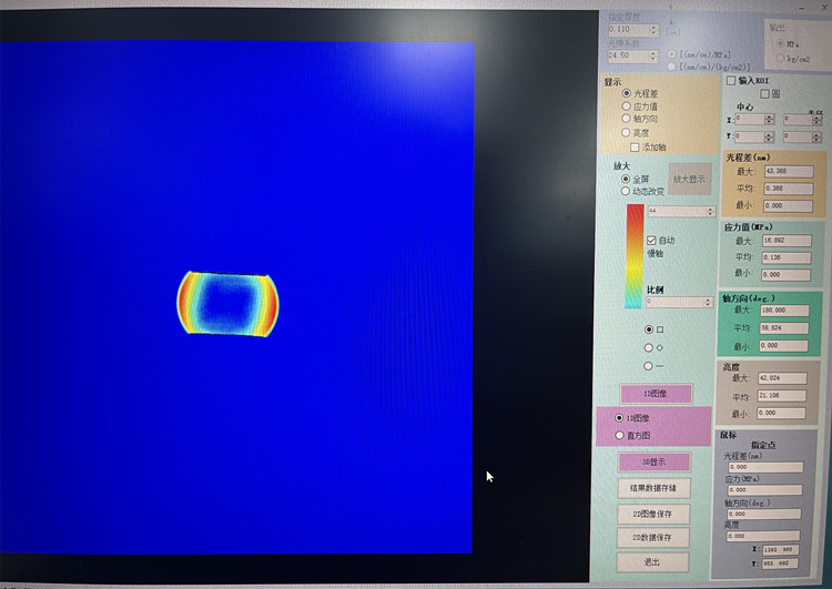 此款應力儀實現了一鍵自動檢測具有應力與雙折射的透明物體內部的光程差和慢軸方向。