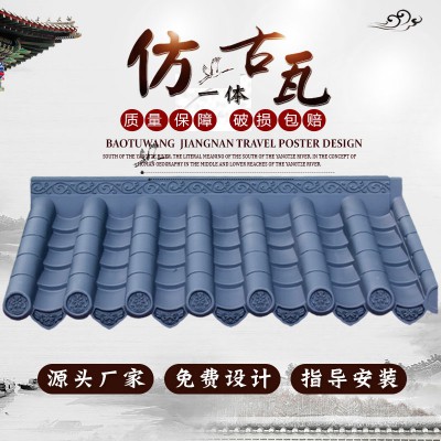 大尺寸仿古瓦樹脂瓦片屋頂一體中式屋檐裝飾塑料仿古石棉圍墻屋頂