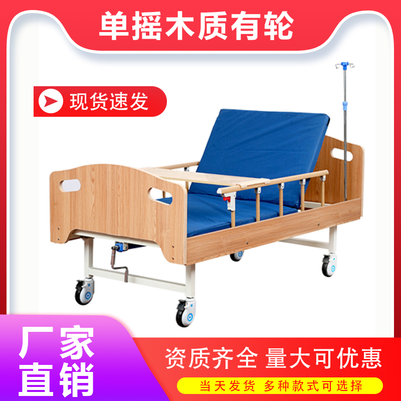 3. 單搖木質有輪護理床 醫用護理床 醫院多功能有輪護理床