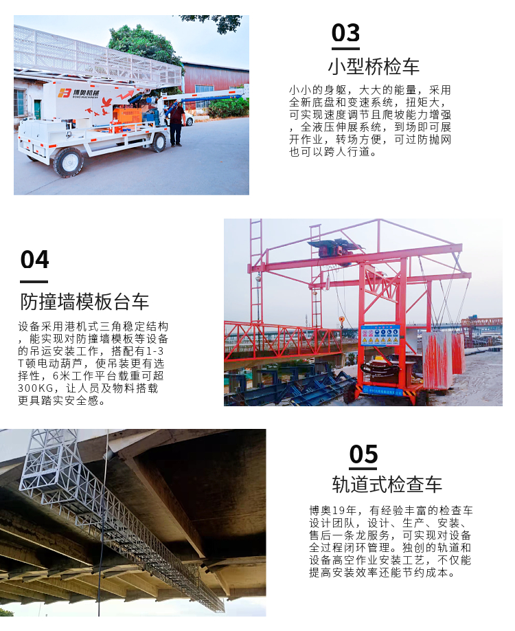 主營產品: 橋梁檢修車 橋梁施工吊籃 橋梁掛籃 橋梁檢測車 橋梁集中排水管安裝設備 小型橋梁檢...