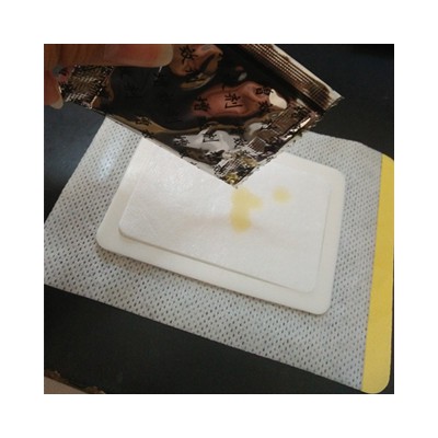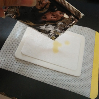 【主要功能】以醫用涂膠底布為基材,根據客戶要求裁切成不同大小的貼片,中間加入一層吸水棉,適合需要長時間外敷的液劑。使用時往吸水棉滴上藥液后直接貼到患處,簡單方便。