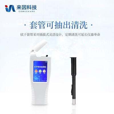 該設備為全新升級產品,安卓智能操作系統。操作采用生物化學反應方法檢測ATP含量,ATP熒光檢測儀基于螢火蟲發光原理,利用“熒光素酶—熒光素體系”快速檢測三lín suān腺苷(ATP)。ATP拭子含有可以裂解細胞膜的試劑,能將細胞內ATP釋放出來,與試劑中含有的特異性酶發生反應,產生光,再用熒光照度計檢測發光值,微生物的數量與發光值成正比,由于所有生物活細胞中含有恒量的ATP,所以ATP含量可以清晰地表明樣品中微生物與其他生物殘余的多少,用于判斷衛生狀況。