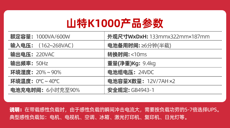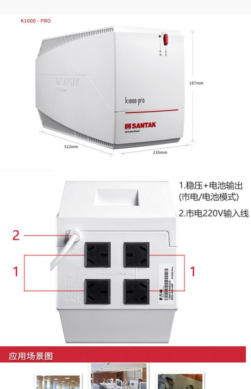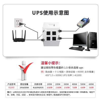 山特UPS不間斷電源K1000臺式電腦斷電蓄電池應急停電備用