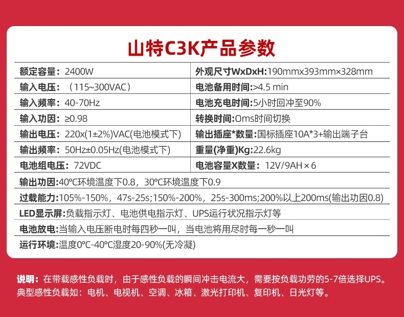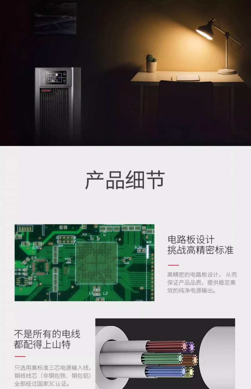 山·特UPS電源 C3K 在線式機房服務器穩壓內置蓄電池