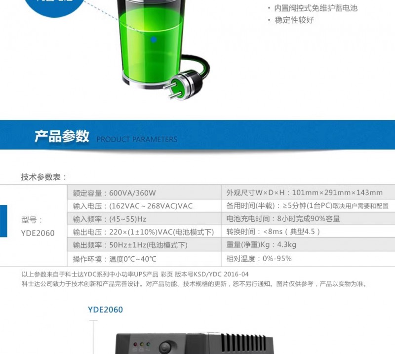 科·士達UPS電源YDE2060后備式 電腦斷電延時 應急