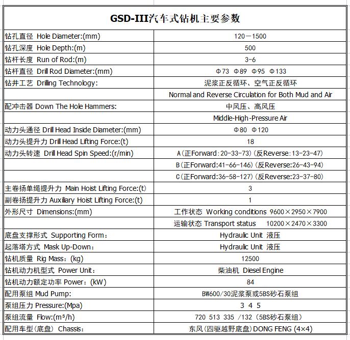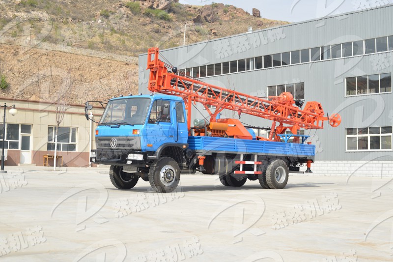 ●此機(jī)型是采用車載自走式,鉆機(jī)選用東風(fēng)四驅(qū)越野底盤,動(dòng)力強(qiáng)勁,爬坡有力, 適合在礦區(qū)、野外等環(huán)境惡劣的地方作業(yè)。柴油機(jī)、變速箱、傳動(dòng)箱、換向箱、動(dòng)力頭、提升卷揚(yáng)機(jī)、鉆塔、底架、操縱系統(tǒng)、孔口裝置、液壓起塔系統(tǒng)、BW600/30泥漿泵、發(fā)電機(jī)組等都安裝在汽車底盤上。