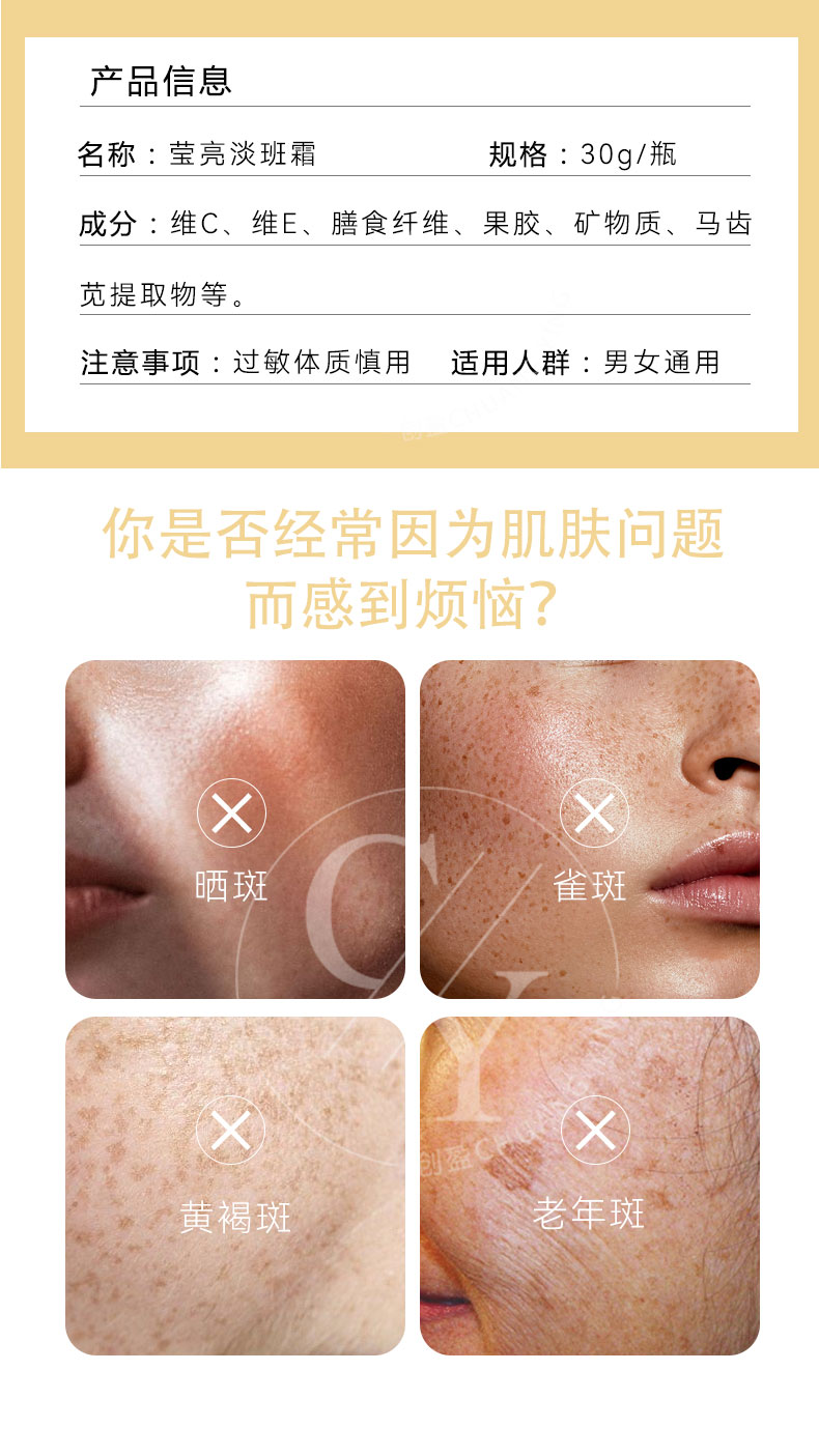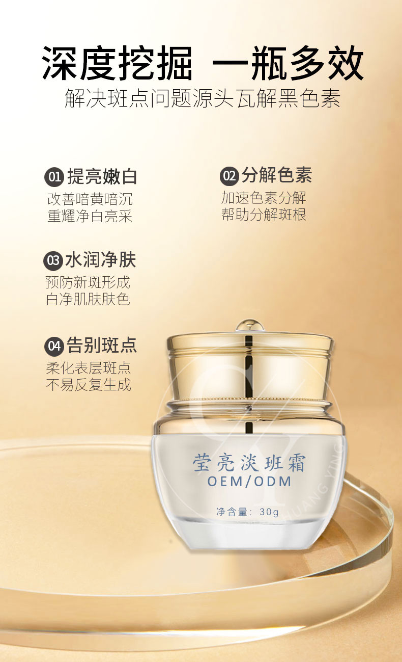 瑩亮淡斑霜 甘草保濕淡化色素提亮潤膚面霜護膚品原料oem
