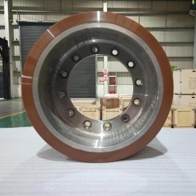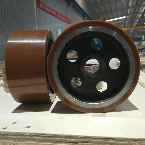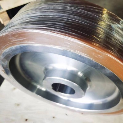材質(zhì)特性:采用高耐磨聚氨酯彈性體,通過(guò)澆注或噴涂工藝緊密包裹金屬輪芯,形成無(wú)縫隙的防護(hù)層。