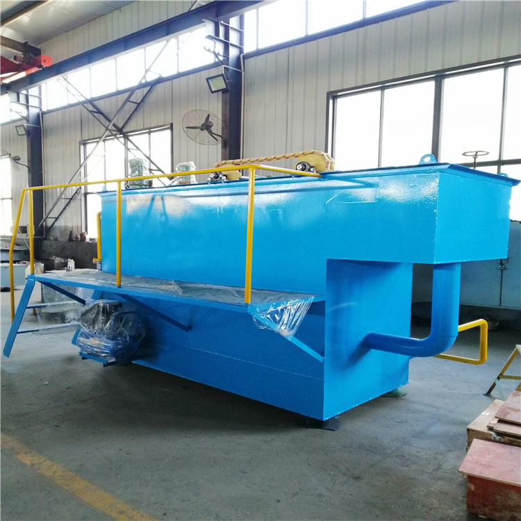 ? 溶氣氣浮機是利用部分處理后的回流水,經氣浮循環工作泵,加壓進入溶氣罐中與壓縮空氣進行混合,空氣溶解到水中,這時的溶氣效率達到80%以上;在氣浮池內減壓釋放,溶入水中的空氣以20-30μm氣泡形成析出,具有很高的表面積吸附能力,微氣泡同污水中的懸浮物結合,使懸浮物在污水中的比重變小,直至浮上水體表面;形成大量浮渣,再由氣浮池上安裝的鏈式刮沫機,把浮渣清除,達到處理效果。