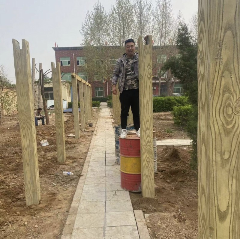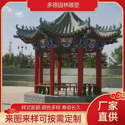 水泥彩繪仿古涼亭 現代仿木紋亭子走廊 水泥彩繪仿古涼亭