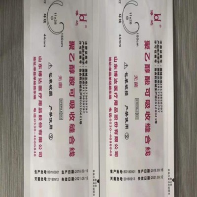 聚乙醇酸可吸收縫合線,產品具有水解吸收,組織反應低,打結方便牢固的特點;線體質軟拉力強勁,良好的組織相容性,縫合針采用進口馬尼針組織穿透力好,針線鏈接處沒有毛刺扁平的現象,為組織縫合減少損傷為患者提供安全保證。
