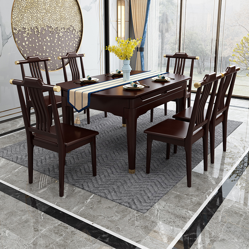 新中式實木巖板餐桌 新中式實木巖板方形餐桌