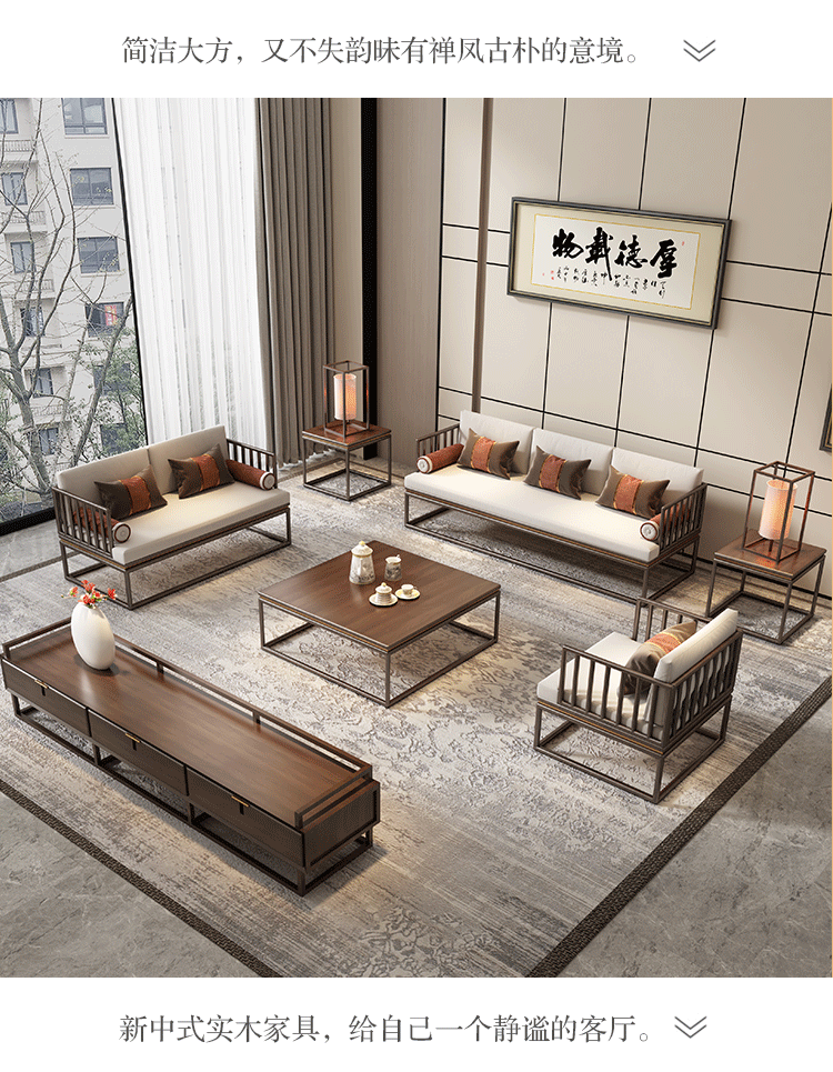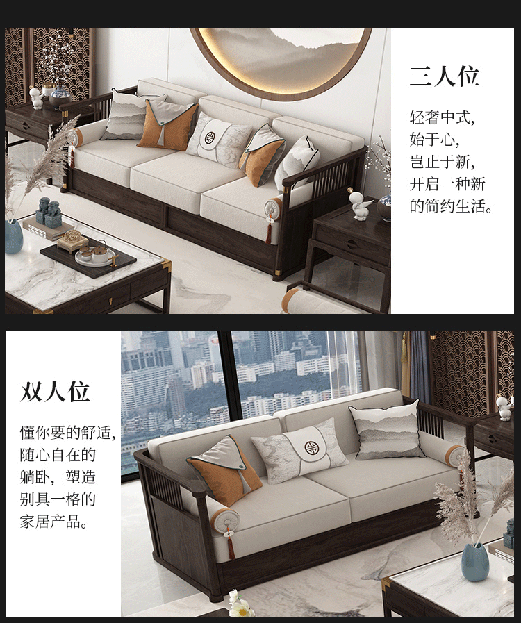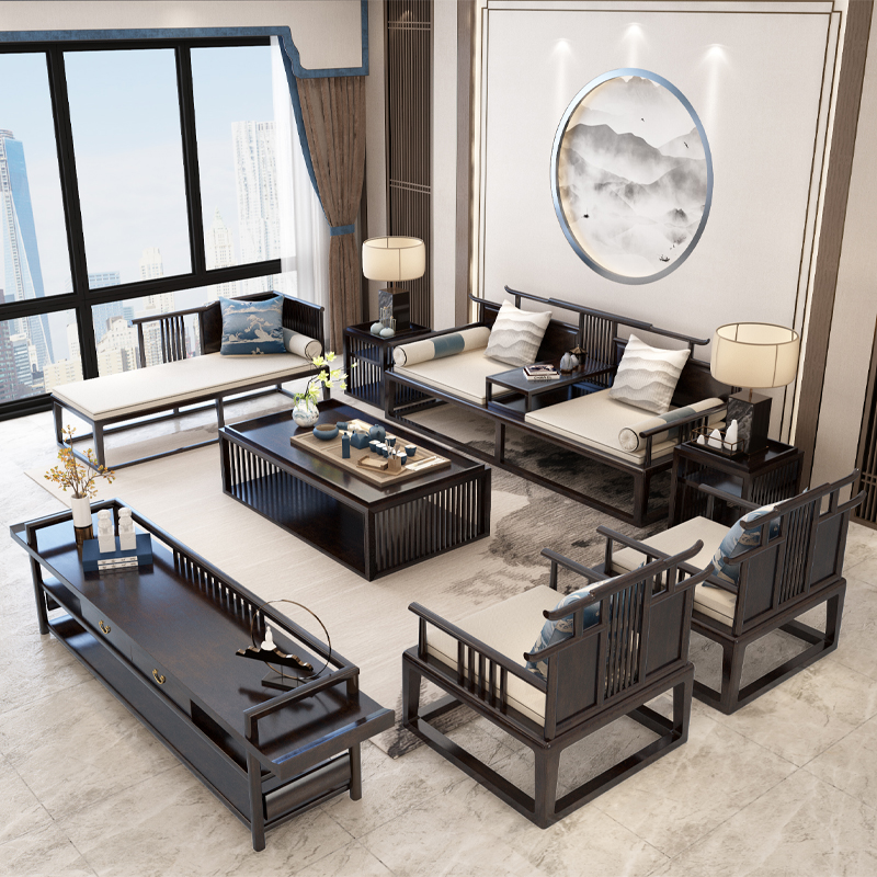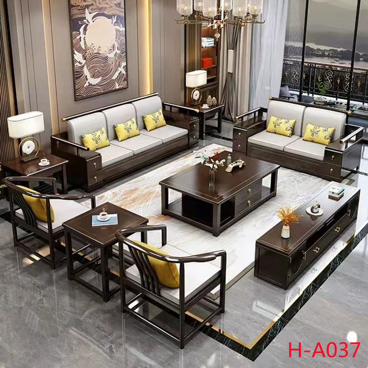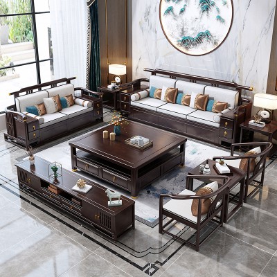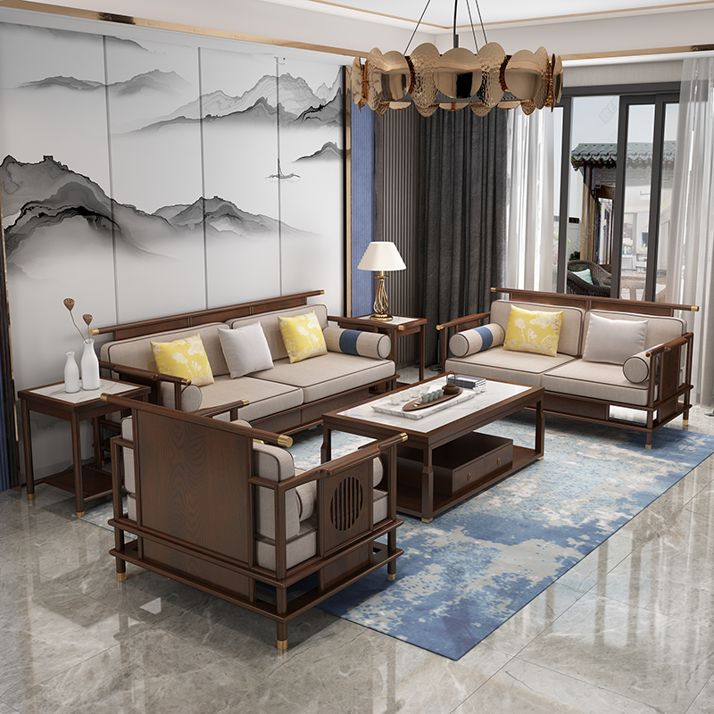 實(shí)木沙發(fā) 新中式實(shí)木沙發(fā)組合 現(xiàn)代輕奢簡(jiǎn)約布藝沙發(fā)